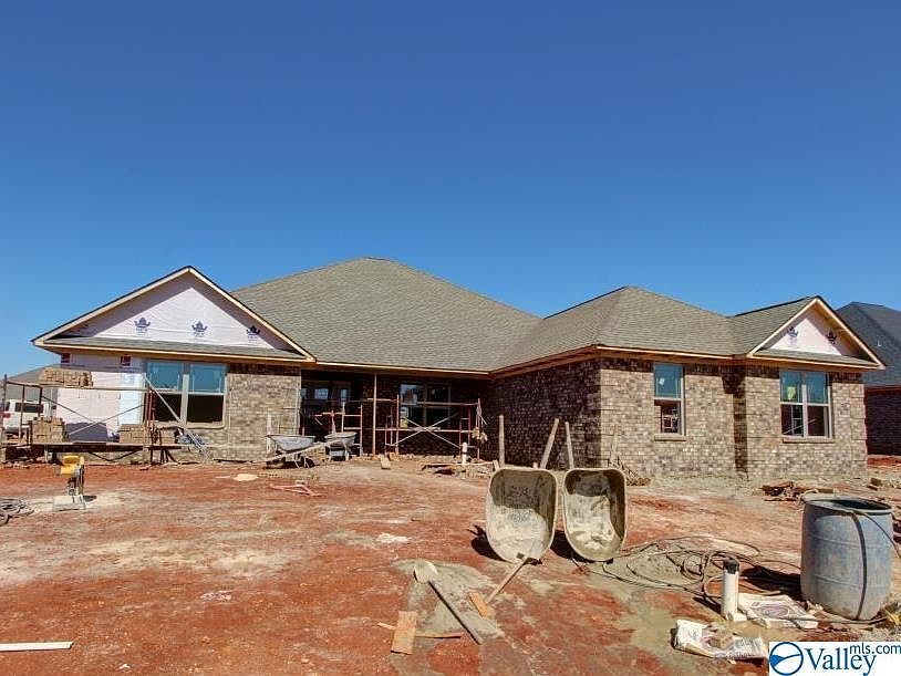 Under Construction-READY IN APRIL-Hillsdale A floor plan is a 4 bedroom, 3 bath home with Dining Room, Sunroom & 3 car garage. Open kitchen has 10' ceiling, granite counter tops, large island with countertop seating & storage, custom cabinetry, rev-wood floor, tile backsplash & pantry. Family Room features 10' ceiling, recessed lights, rev-wood floor, extensive trim, & gas-log fireplace; Dining Room has 10' ceiling w/trey, shadow box under chair rail & rev-wood. Master Bedroom w/double trey, ceiling fan & rev-wood. Master bath includes large tile shower, granite vanities, jetted tub, linen closet & huge walk-in closet. Granite in all bathrooms. NO CARPET! Covered rear porch plus patio. Sodd