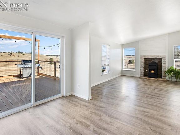 This inviting, spacious single-level home offers comfortable living on 1.02 acres across two lots, making it a true Colorado retreat. Beautifully updated throughout, the home features an efficient pellet stove, soaring vaulted ceilings, and an open concept floor plan, perfect for hosting gatherings. The large dining area, kitchen and living room blend effortlessly, creating a warm, welcoming space for friends and family. Step out onto the newly redone deck, complete with a fire pit and sitting area, ideal for taking in the stunning Colorado outdoors. The master suite is designed with relaxation in mind, featuring a 13 x 9 sitting room or office, a luxurious 5-piece bath with a soaking tub, and a convenient walk-in closet. For additional storage and workspace, the property includes a detached 40 x 60 two-car garage and workshop, built in 2020 on a solid concrete pad with its own driveway. This home combines comfort with practical amenities, ready to welcome you into your Colorado lifestyle!