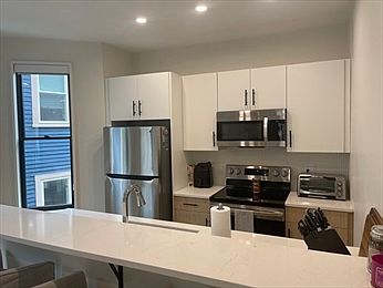 This newly constructed luxury apartment is just a 3-minute walk from the Ashmont T station. Stunning corner unit offers 1 bedroom and 1 bathroom, featuring an abundance of windows and a modern design. The beautiful kitchen includes contemporary cabinets, quartz countertops, and stainless steel appliances. The bathroom boasts spa-quality amenities, such as a large shower with a dual-function shower system and a stylish frameless glass enclosure. Additional features include a private deck, in-unit washer and dryer, and access to an outdoor common area. Residents can also enjoy an on-site gym, a package delivery room, bike storage, and on-site parking is available to lease.. Experience the comfort and convenience of this brand-new construction!