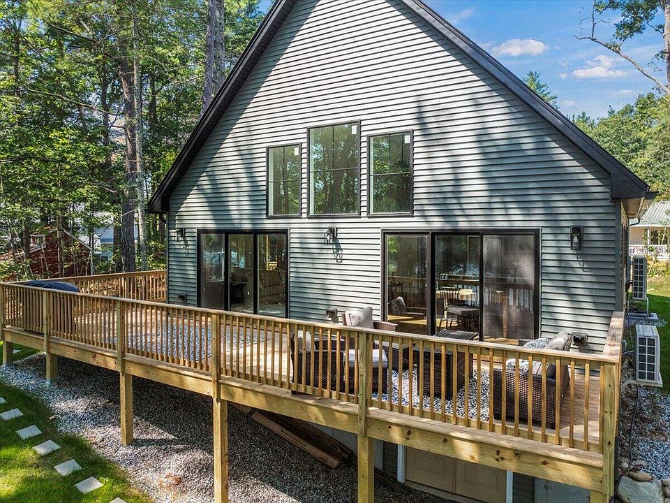 Brand New 2024 Waterfront Home on Barkers Pond ready for immediate occupancy. This beautiful open concept 2,536 SF contemporary home with cathedral ceilings is amazing! Outstanding water views from the kitchen, dining & living room on the 1st level and from the family room on the 2nd level. Large 10'x 42' front wrap around deck. Beautiful kitchen with island & quartz counters. Stainless steel appliances. Heat pumps for heating & cooling. Hardwood floors throughout. Completely finished daylight basement offering a bedroom, bonus room, family room and the mechanical room. This home has a great floor plan & custom designs that you will certainly love. ''Brand New Waterfront Home'' just waiting for you to create family memories. Must see property! Well worth previewing!