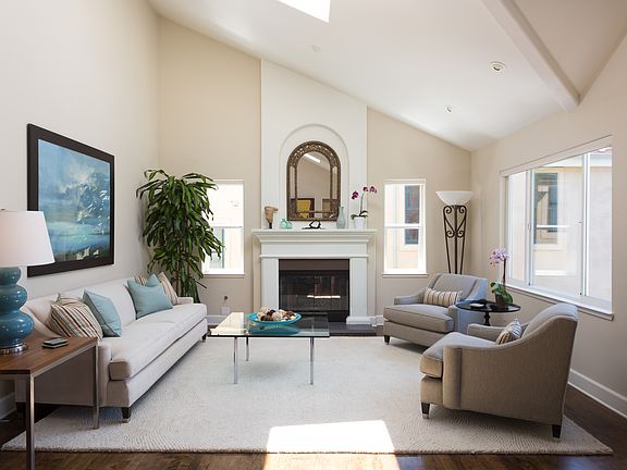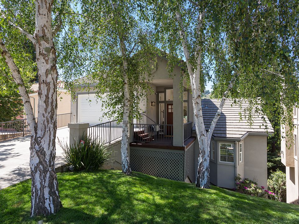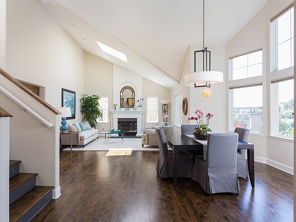 Spacious & private contemporary home on a cul-de-sac perched in the Claremont Hills with a beautiful canyon view. The main level features an open floor plan with soaring vaulted ceilings, hardwood floors, prominent fireplace and private deck. There is a spacious live in kitchen with island, stone countertops and a flat screen television: a great place to relax and socialize. The lower level has 3 bedrooms, including a master suite complete with walk-in closet, steam room and additional outdoor patio. Well situated between Rockridge shopping and Temescal & Sibley Park's ample nature trails, this home is ready for its new owners. Features include: - Living room & kitchen skylights - Custom electric window shades in dining room - Decks with canyon view - Double car garage - Media room with Vertical grain walnut built-in cabinetry and wine refrigerator - Dual zone heating with nest control systems - Surround sound, cable & HDMI hook ups throughout - Security cameras at three entry points