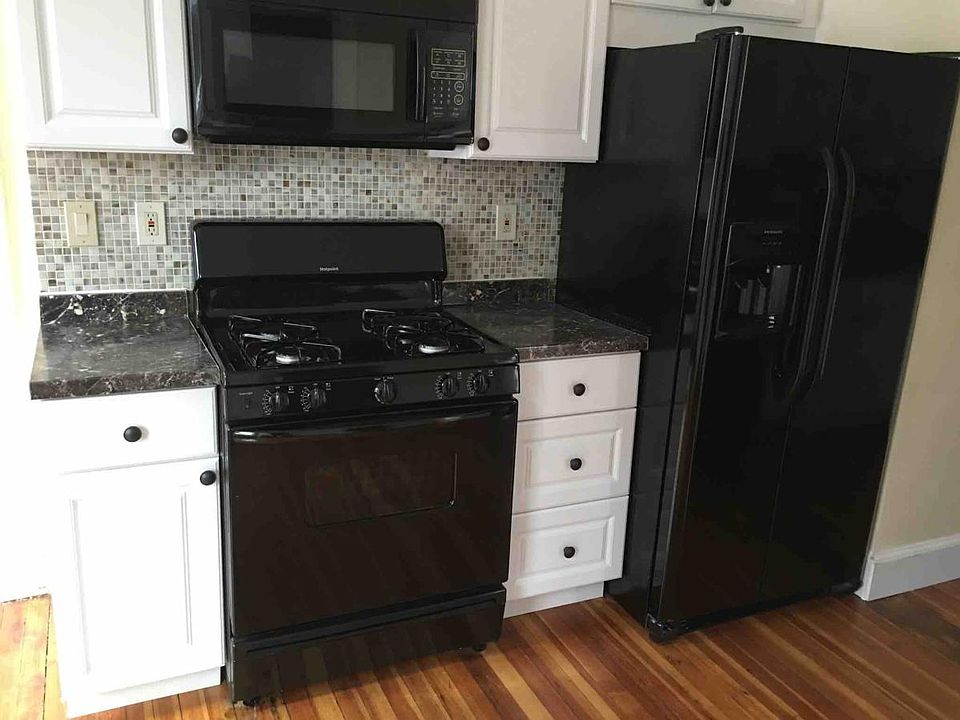 Move in ready . Large totally renovated 3 bedroom 1 bath 2nd floor apt. New bath , new kitchen ,new appliances , new windows,wood floors,off street parking. Owner pays for trash, water and sewer. Tenant responsible for gas and electric.