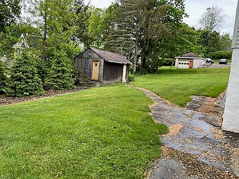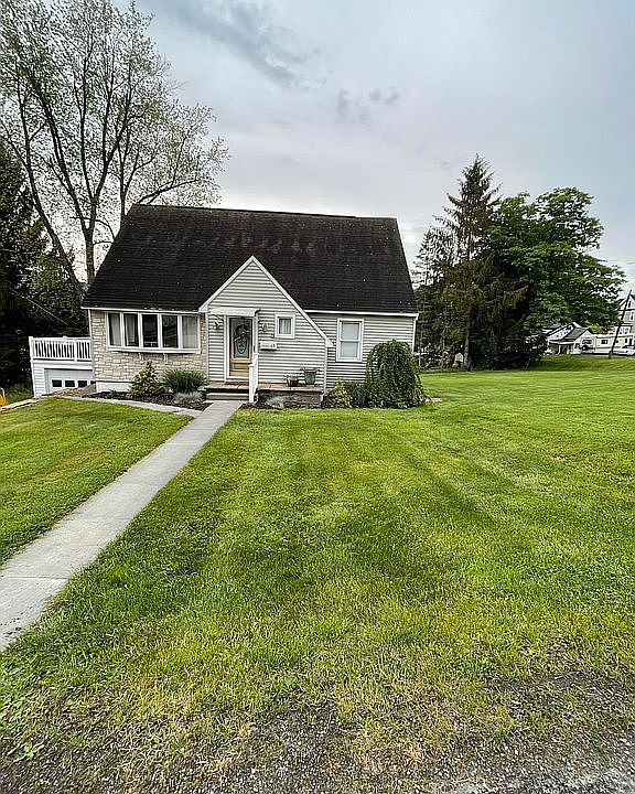 UPDATED 4 bed, 2.5 bath on large double corner lot with big yard and bluestone patio for your enjoyment. Hardwood floors throughout majority of home. Spacious living room leads to kitchen featuring tile backsplash, large sink, and new dishwasher. First floor includes full guest bath, 2 large bedrooms including the MASTER SUITE with walk-in closet and ensuite bath featuring dual-sink vanity and custom tile shower. Upstairs leads to 2 additional bedrooms, which could also make a great home office and 1/2 bath. Plenty of storage with dry basement, attached 1 car garage, and backyard shed. Combination oil/wood furnace allows you to decide between the convenience of fuel oil or the cost-savings of wood. Additional updates include: newly installed water heater, updated electrical service, updated plumbing, and generator hookup connection. Plenty of space with off-street parking for 4+ vehicles.