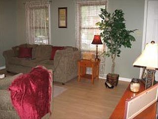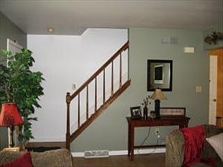 Two-story end unit with 2 off-street parking spaces. Modern kitchen with all appliances and an island. Half bathroom off kitchen. Large dining area open to the kitchen and living room. The sliding glass door opens onto the back deck. The second floor contains 3 bedrooms and a full bathroom. The large bedroom has a walk-in closet. the other two bedrooms have large closets as well. The bathroom has double bowl sinks, a storage closet and plenty of cabinents under the sinks. The Basement is finished with thick "barn" siding, berber carpet and drop ceilings with wood beams. There is also a back office area with the same finishing touches. The laundry is located in the basement - both washer and dryer are included in the sale. Large backyard that opens into common ground. Perfect for a ballgame or flying a kite. The $45 monthly Home Owners Association Fee covers lawn maintenance, snow removal and trash.