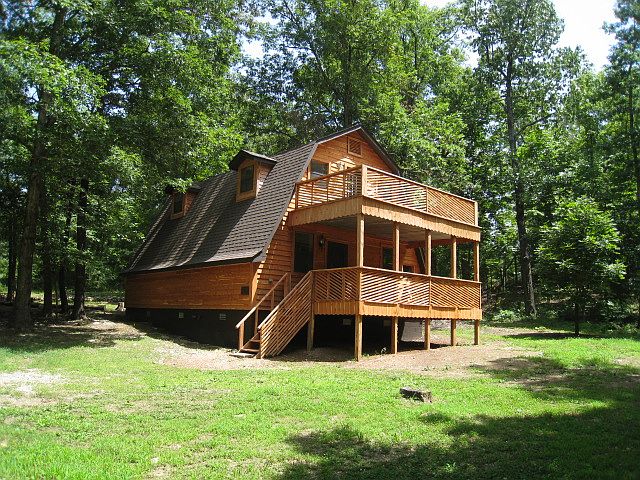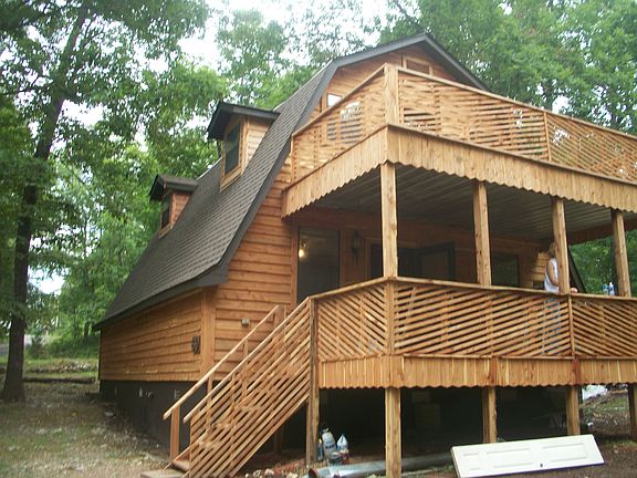 RUSTIC OZARK MOUNTAIN VACATION HOME IN LIKE NEW CONDITION!! All improvements made in 2015. Outside with new cedar siding, roof and 2 decks. Inside with new flooring, sheet rock, cedar trim, doors, cabinets, granite tops and appliances. 2-bdrms/2-baths, claw foot tub, walk-in shower, CH/A, upper deck and covered porch. Situated on 3 lots within walking distance of BEAUTIFUL LAKE VAGABOND!!