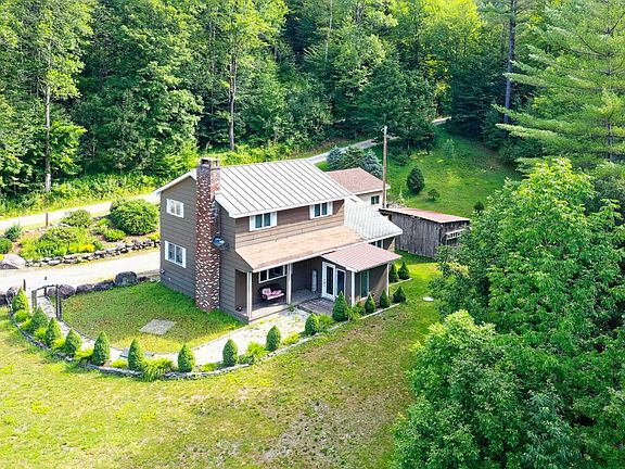 Enjoy this private peaceful location on a dead end road that sits high above the West Branch of the Tweed River with lots of space for outdoor enjoyment. The beautiful updated kitchen with granite counter tops and wood floors has lots of light and a wonderful large island with room for everyone to gather. The inviting dining area then opens to the spacious living area with a wood burning fireplace. This level also has a den and back hall to the outdoor covered porch. A half bath and laundry complete this level. Upstairs there are 3 bedrooms, the master with it's own bath, 2 more bedrooms and another full bath. The basement has a large workshop and a bulkhead door to the side nearest the garage for easy accessl There is a finished office and lots more unfinished space. Outside you enter the well defined driveway with landscaping along the left side to the 2 car detached garage; In the back there is a fence along the river side of the property and small evergreens border the walkway to the back porch. Tbe garage and a small shed offer room for all your winter and summer toys. Don't miss this opportunity to enjoy the privacy of this location and yet be minutes to Killington and Pico.