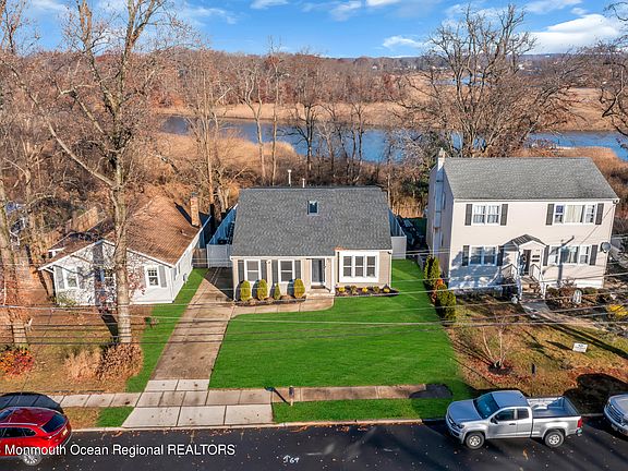 Remodeled waterfront home that sits high above the Swimming River in sought after Red Bank. With wonderful river views, this attractive home offers newer roof & siding, gleaming hardwood floors, recessed lighting, central HVAC, a gas fireplace, two renovated bathrooms & gorgeous chef's kitchen with breakfast bar, wine cooler, soft closure cabinets, quartz countertops, stainless steel appliances & farmhouse sink (renovations ~2016). The home features a welcoming dining room & nicely appointed family room with custom molding & decorative chair rails. Large windows & French doors provide a tremendous amount of natural light & phenomenal river views. Home has a private fenced back yard, patio & large storage shed. Its located close to the GS Parkway & NJ Transit train, ideal for commuters!