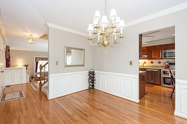 END OF GROUP BRICK TOWN HOUSE BACKING UP TO THE WOODS AND THE TRAIL. THIS HOME OFFERS GRANITE COUNTER TOPS & ALL STAINLESS STEEL APPLIANCES IN THE KITCHEN, ALL HARDWOOD FLOORS ON THE MAIN LAEVEL, CROWN & CHAIR MOLDINGS ALONG WITH WAINSCOTING ACCENT THE MAIN LEVEL, TWO BAY WINDOWS, A LARGE REAR DECK AND A WOODBURNING FIREPLACE ARE SOME OF THE MANY FEATURES OF THIS HOUSE. H20 HEATER 2013, HVAC 2005