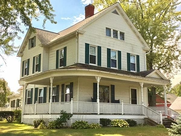 MOTIVATED SELLERS! A rare opportunity to own a stately Victorian that's been in the same family for 4 generations. This home offers updated modern conveniences w/ original characteristics that draw you to Hatfield. The gorgeous renovated kitchen is bright & airy w/ HW floors, custom cabinets & SS appliances, leading to a 3-season sun-room & a deck w/ views of meadow & barns. There is an updated 1st floor full bath w/ laundry & family room, w/ gas FP & mini-split. Step into the formal DR, LR, study & foyer & step back in time to enjoy the beauty & charm of pristine hardwood molding, flooring & a fireplace. Upstairs are 4 bedrooms, HW floors & a full bath. The wrap-around mahogany porch defines the front but the multi-purpose barn will pull you in to make this house your new home! Newer roof, furnace and windows! The 2BR/1BA house, barns & 1.27 acres next door @ 71 Chestnut can be purchased w/ this for $609,900. Perfect for in law or income $! All knob & tube is gone! Being sold AS-IS!