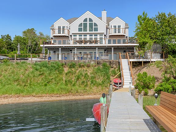 Newly upgraded, this offering has its own dock with potential kayak and paddleboard, and is 0.4 miles to Long Beach, a gorgeous 1+ mile stretch of West Facing beach. The chic home is west-facing for sunsets from almost every room--even the walk-out lower level. Brand new Ipe decking, modern wire rails, Gunite pool with Brand New Heater and deep-water dock make for an amazing waterfront experience. There is a tremendous outdoor entertaining space on two levels. The 4,500+- sq. ft. home is spacious with open flow. A New two-story living room setup features an stunning Modern window package and brand new furniture, plus a big new TV! The kitchen and dining room also offer walls of windows that drench the home with light and views. This is the perfect house for entertaining with 5 bedrooms (plus a room with a sofa bed), and 5.5 baths. A finished lower level offers a wet bar, pool table, family room and pool bath, with a wall of windows and views out to Long Beach. New spacious Ipe decks with cable rails allow for easy outdoor living and entertaining just above the water. The house is in a quiet neighborhood, 2 minutes to Sag Harbor Village. When all the backyards lose their foliage at other Hamptons properties, this winter rental has its most gorgeous views--open water views from all 3 levels. [[Rental Registration # RP200192]]