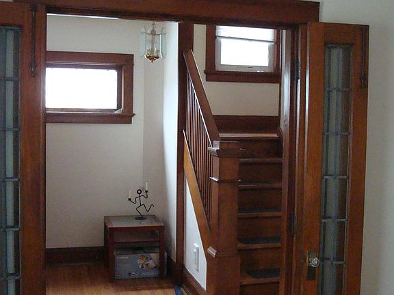 Beautiful 4 bedroom 3 full bath home featuring a master suite with full bath, walk-in closet, skylight. spacious bedrooms with closet space, hardwood floors, oak kitchen, security system, high efficiency furnace, tankless water heater, stained glass, natural trim, deck, garage, nice yard,. Walk to the footbridge 12 months