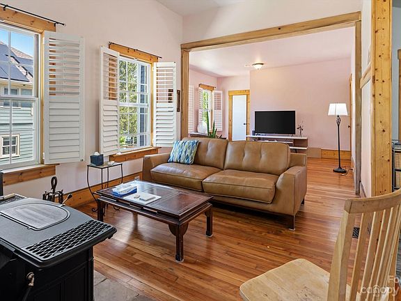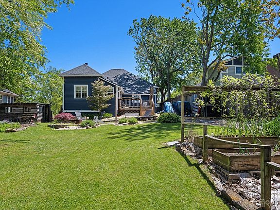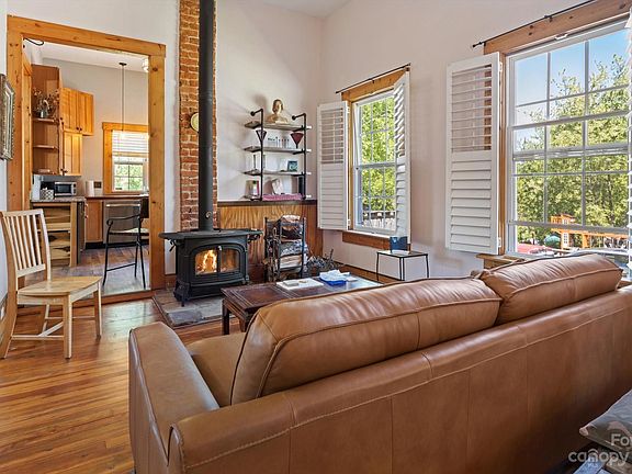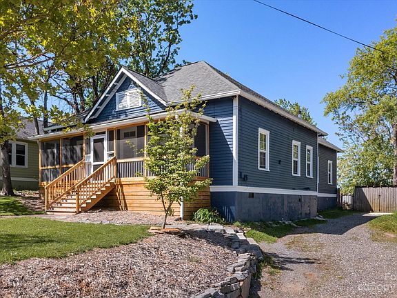 This historic home in Asheville has been tastefully updated while still maintaining its original character. Enjoy coffee on the screened porch and cozy up by the firepit in the evening. With 16ft high ceilings throughout the home, the living and dining rooms boast exposed brick and hardwood floors, and a wood stove. The charming kitchen features a live-edge wood bar, wine bar, double oven with gas range and stainless steel hood, and double height cabinets. The primary suite has a spacious bathroom with a large soaking tub, shower, and a unique circular window overlooking the backyard. The back deck, stone patio with fire pit, garden beds, and green space offer ample outdoor living opportunities, and a shed made of reclaimed wood could be used as a workshop or studio. Double vapor barrier in crawlspace, triple filter for allergens on HVAC, tankless water heater. Home is just ¾ mile from River Arts District and South Slope areas of Asheville, with many restaurants, breweries and shops.