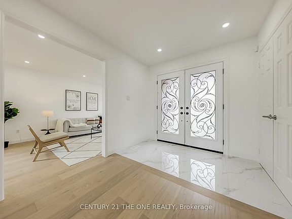 This Gorgeous Home Is Newly Renovated From Top To Bottom W/ Impeccable Attention To Detail Featuring High-End Finishes. Nestled On A Spectacular Premium Pie Shap Lot (Wider At Rear 35.58 ft x 27.42 Ft Per Geowarehouse). Featuring Custom Cabinetry, Designer Light Fixtures, Integrated Lighting, Engineered Hardwd Flrs, Brand new Fireplaces. The Contemporary Style Kitchen Features + Quartz Countertops, Brand New Top Of The Line Bosch B/I Appliances. 4 Bedrooms On Second Level All W/ Ensuite Bathrooms, Inclusive of An Expansive Primary Suite, Luxury Open Concept Walk-In Closet Opens To 5-Piece Ensuite, His & Hers Sinks, Free Standing Soaker Tub & Seamless Glass Shower. Tons of pot lights + skylight+ smooth ceiling.