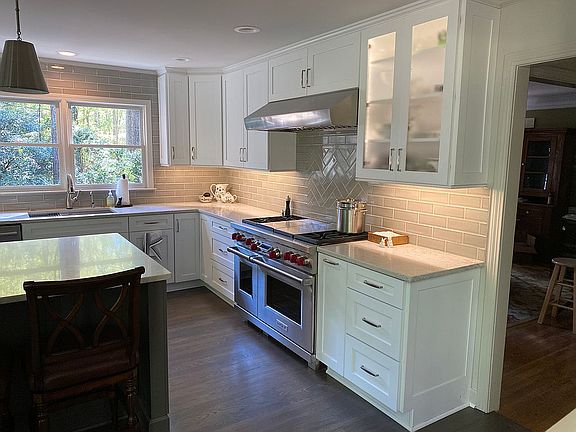Easy flow through the house with eat in kitchen, island. Hardwoods in kitchen, entry, and great room. Beamed ceiling with wall of windows looks out on large deck. Master on main, formal dining room, study and 2 story entry. 3 large bedrooms up, each with private bath. Open cat walk between bedrooms with view to great room and entry. Basement needs your choice of carpet to finish off, with additional bedroom and full bath. Neighborhood Description Close to Chattachooche, quiet and mature.