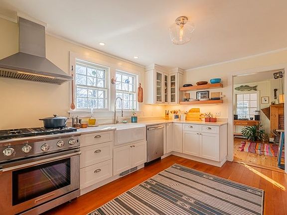 It is rare something comes along this perfect- set on a quiet street right in downtown Manchester, just seconds away from stores and restaurants, with stunning pastoral mountain views! Built in 1920, this home has been beautifully updated with an updated kitchen featuring quartz countertops, a farm sink, and stainless steel appliances. The owner recently added doors off the living room that open up to a brand new spacious deck, perfect for outdoor seating and enjoying the amazing views. The first floor includes a mudroom, living room, kitchen, dining room and adorable powder room while upstairs has two bedrooms and a fully renovated marble tiled bathroom. Additional upgrades include a new furnace, washer and dryer and a wood stove. All this on town water and sewer! Showings start Wednesday November 13th.