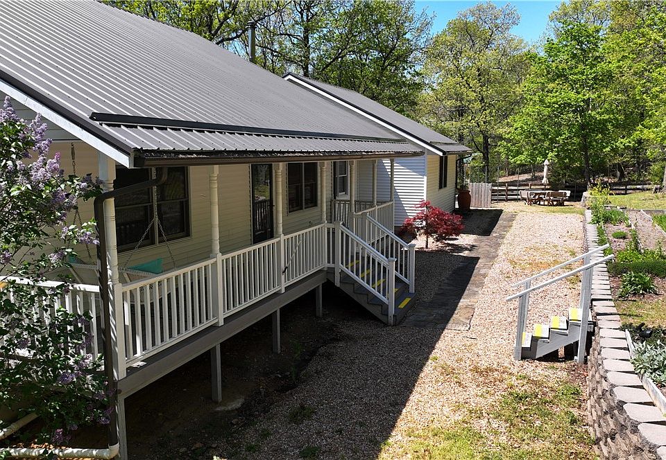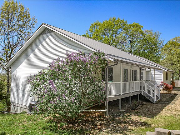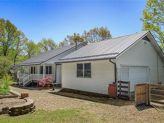 Splendid 3 bed (could be 4 bedroom), 2 bath home nestled in the trees and just outside the city limits. property includes 9 plus acres m/l. Seller has made the most of the land by planting trees, flowers and herbs (see attached list) beautifully landscaped. Main floor has large living room and modern Kitchen plus a lovely master bedroom and large pantry and laundry room. Basement could be made into a nightly rental, mother-in-law quarters or game room with bedrooms for the teens. Home is equipped with energy saving solar panels and has beautiful decks for relaxing and entertaining plus a storm shelter. NOTE: 6.12 KW Solar System with 2 13KW Back up batteries - Sun Power, New motor for pressure tank, New High efficiency dual fuel heat pump and propane furnace, deer fencing around front yard. Refrigerator, washer/dryer, porch swing and bluebird houses convey