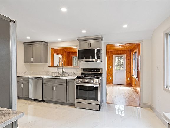 Welcome to this beautiful 3 bedroom home in the heart of Hudson and close to all the town has to offer! You will be greeted by a bright & well crafted / renovated home with brand new real hardwoods mostly throughout. Enjoy the new kitchen, w/ a gorgeous tile floor, cabinets, granite countertops, large pantry & stainless steel appliances. The living room looks warm w/ pine walls and a vaulted pine ceiling, including a skylight, bringing lots of natural light into the home. Enjoy the additional bonus rooms, that can be used as a dining room and the other as a continuation of the living room. The 1st level includes the primary bedroom w/ ample closet space. Up the lovely staircase to the 2nd level you will find two additional bedrooms, each with closets and windows. Also, painted inside and out, new Navien tankless water heater, plumbing & fixtures, electric, insulation, garage door, driveway, mostly new windows, appoxied basement & garage flrs & new landscape, what a home!