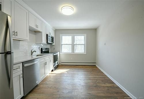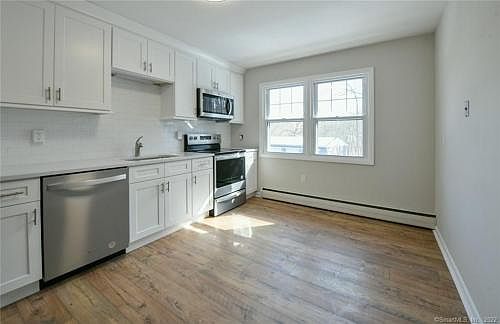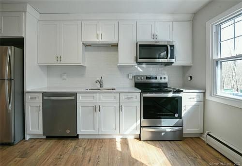 Brookside apartments of Cheshire, Small apartment complex with 12 units, Move right #69, This remodeled second floor 1 bedroom apartment. has Large living room hardwood floors, slider to deck. eat-in Kitchen with brand new cabinets and appliances, Brand new bathroom, 1 bedroom with hardwood floors, lots of closet space, ample off street parking, washer/dryer coin op in complex. Rent includes Heat & hot water. Available immediately.....application, credit & background check-2 months security + 1st months rent....no pets, no smoking. Easy for commuters, close to 691 and 84.