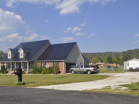 This home has all four bedrooms on one level, is situated on TWO AND A HALF acres of FLAT land, has a huge attic that could be finished out, and a fenced field with a building containing two stalls!!! There is also a pond with many fish! Hardwood floors and carpet in the bedrooms... NEW appliances... Argillite Elm is behind the home providing residents with a walking track, playground, and a ball field! You will want to schedule a time to look at this home!!! ***Close to Greenbo State Resort Park!