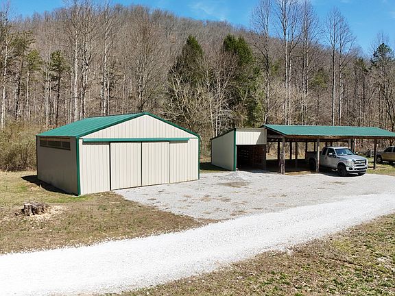 Experience rustic charm and modern convenience in this stunning two-bedroom post beam home, featuring durable metal siding and roll-out storm shutters for added protection. Nestled on 20.89 surveyed acres, this property offers breathtaking mountain views and serene sounds of Bullskin Creek. the spacious detached garage provides ample storage, while the versatile equipment shed is perfect for your tools, hobbies, or agricultural needs. Whether you're seeking a peaceful retreat or a functional homestead, this property delivers both beauty and practicality. Don't miss your opportunity to own your own piece of paradise!