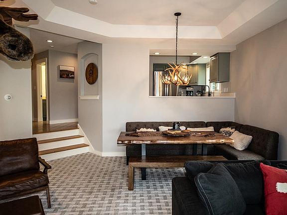 Rare two bedroom end unit in the Solitude Village community with recent upgrades. Direct slope access to the Promenade Trail as well as short walk to the Solitude Express lift and community amenities. Open living design with end unit location enhances natural light flow and views. Each bedroom en suite. Living/dining area is accented by a tray ceiling and is centered by a wood burning fireplace. Slopeside deck off the living room overlooks the trail with long distance easterly views. Air lock entry mudroom is equipped with numerous built ins and provides easy access to private exterior ski locker and the Okemo slopes!