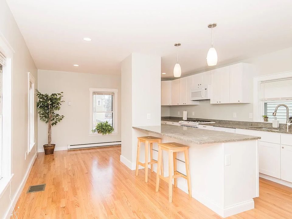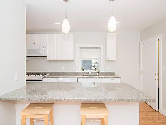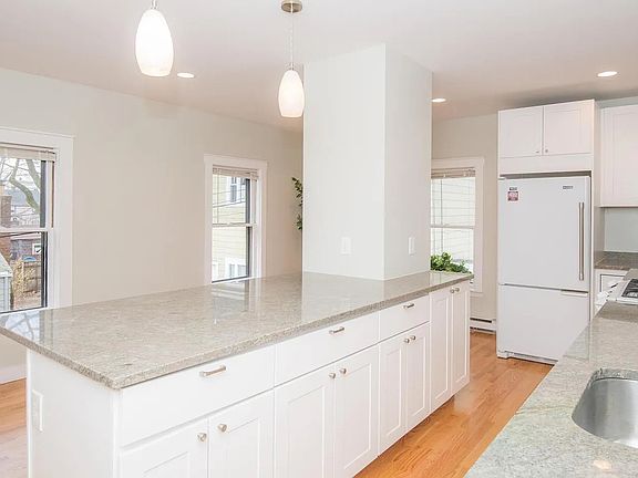 Recently renovated, two-level gem only block to Davis Square. Exceptional SE light provides all-day brightness. Beautifully refinished wood floors flow throughout. Open floorplan perfect for entertaining or daily living. Modern granite kitchen features a spacious island, ideal for multiple cooks & ample seating. An extra nook provides space for a small dining table or a dedicated workspace. Direct access from kitchen to rear stairs to small yard or patio & 2-car parking. The inviting living room boasts a double closet & direct access to a full bath. The 1st level bedroom includes a bonus study area & double closet. 2nd full bathroom is accessible from the hallway. Upstairs offers 2 additional bedrooms & handy eaves storage. The basement incl. more storage space plus laundry. Year-round comfort from 4-month-old, high-efficiency split system for heating & central air by electric, Gas for cooking & hot water. Professionally managed plus owner involvement. Easy access to Bike Path & T. Photos from prior listing. Unit available 10/1/2025. Rent Fee Includes: Water, Sewerage Disposal, Refuse Removal, Extra Storage, 2 Off-Street Parking Tenant responsible for: Gas, Electric, Wifi, Cable Tenant must have renters insurance Lease runs 10/1/2025-8/31/2025 Coin-op laundry in basement Due at signing: Security deposit = 1 month's rent NO PETS NO SMOKING