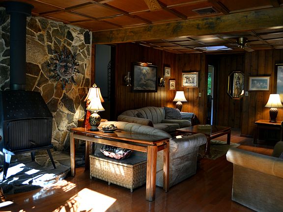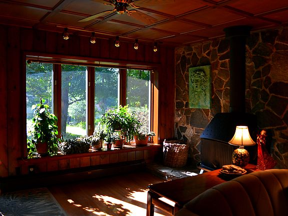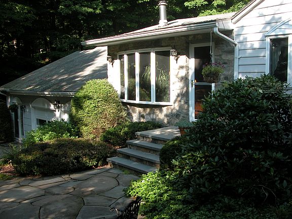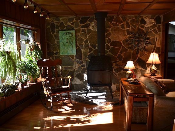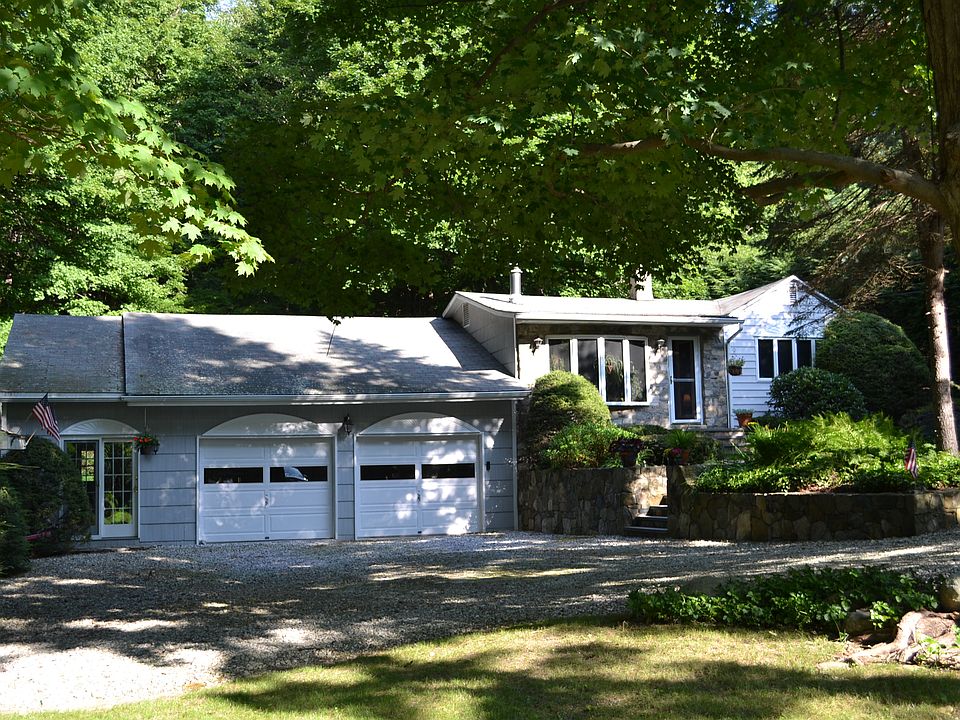 A "COUNTRY SANCTUARY" nestled among mature trees at the end of a gravel circular driveway enabled on one leg by a common shared easement with the adjoining property. Offering complete privacy and only 1/2 mile to Exit 17 on I-84. This fieldstone home is truly unique with a beautiful landscaped slate entrance and very private backyard w/fieldstone patio, deck & fire pit. The kitchen features tiled flooring, solid maple cabinets, granite and stainless. baths have been updated and include granite counter tops. A large living room w/bow window, fieldstone stove wall, tongue & groove pine, skylight, ceiling fans & built in shelving make for a nostalgic country inn feel. Included are two decorative cast iron Danish Morso wood stoves to nicely warm you on cold winter days & nights. There's plenty of storage space in this 3 bedroom one and half bath home. The creative floor plan offers so many possibilities. The two car garage leads to a large workshop, storage, laundry and utility room.