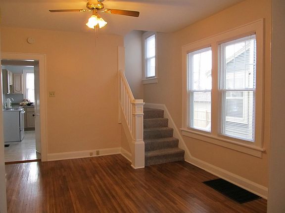 Freshly painted 2 bedrooms, 1 bath duplex includes living room, dining room and large kitchen. It has wood floors, updated windows, window blinds, newer furnace and central air, washer dryer hook up in basement. One off street parking space. Has covered front porch and is walking distance to grocery, restaurants & coffee shops. Tenant is responsible for all utilities (water,gas & electric). Minimum credit score is 680,no evictions, bankruptcies or felony convictions. Household income of at least 3x the monthly rent. No Smoking, Cats Only maximum of 2 ( additional $20 monthly fee will apply)