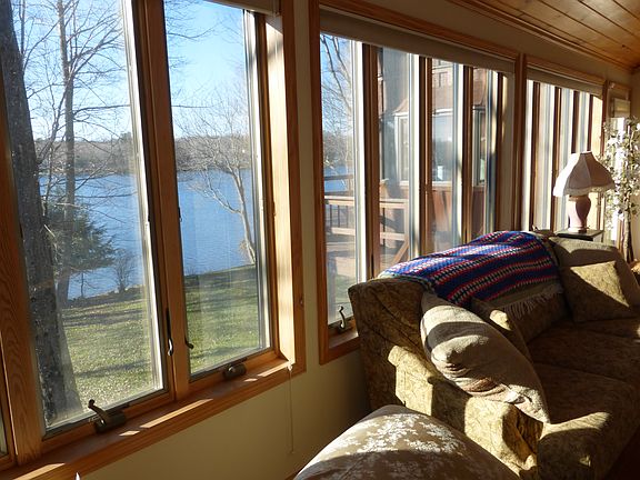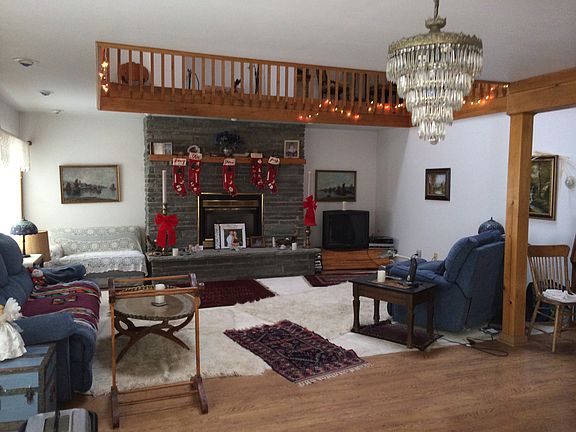 Panoramic lake views with 180 feet of lake frontage on gorgeous motorboat Wrighter Lake. Fishing, boating, and breathtaking sunsets make this lake ideal for those seeking their escape from the city. 3 full size bedrooms and a fourth sleeping loft, overlooking the entire home, surrounded by a balcony. Massive living room with gleaming hardwood floors and stone faced fireplace insert. The family room boasts tile flooring and a wall of windows to gaze at the lake. The large finished, lower level also offers an expansive, nearly 1000 additional sq ft, including hand-built round Pennsylvania stone fireplace. The home is in move in condition with freshly painted interior and exterior, Master suite with jacuzzi tub, modern kitchen with state of the art induction cooktop, microwave,