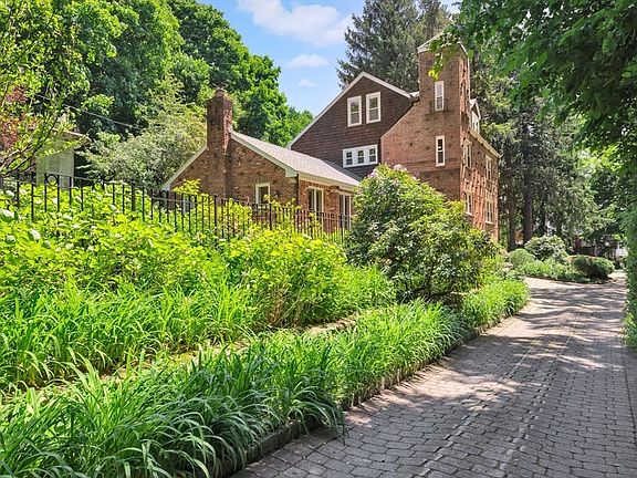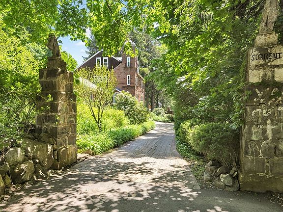 With the feel of an enchanted European villa, stone pillars, statues, & a cobblestone road invite you in to tour this tucked away treasure. Graced by lush greenery, blue stone patios, scores of perennials & a gentle canopy of calming trees, this is an architecturally-unique, castle in the woods! Take in the floor-to-ceiling glass doors & soaring ceilings of the great room, drawing in the woodlands while boasting terrazzo floors & a splendid wood-burning fireplace. Well-proportioned rooms flow w/ease, from the dining room to the kitchen to a half bath & cozy den, each with windows or a glass doors to embrace harmony with nature. Upstairs, all 6 bedrooms are spacious & include a primary suite w/walk-in closet & bath. Let your imagination run wild- there's even a magical lookout tower! Consider development potential, add an ADU/in-law, or embrace & honor all this home is waiting to offer you in your own “Secret Garden” adventures. Too many updates to list, ask list agent!