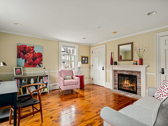 This spacious, newly renovated condo lives like a classic New England historic home but with all the conveniences of condo living - just steps from downtown Camden. The patinaed wood floors, oversized windows with detailed moulding, four gas fireplaces, gracious staircase, and stunning stained glass front doors make this a timeless beauty. The bright and airy, open-concept kitchen features loads of cabinetry and clever storage and adjoins the dining and living areas. The primary bedroom on the first floor features a walk-in closet and full bath with an expansive shower and nearby laundry area. A large covered patio (with historic details like a beadboard ceiling and brick flooring) offers a private outdoor space and a convenient entryway. Upstairs, there are two beautiful bedrooms, four spacious closets and a full bath. The living spaces are nicely separated from the bedroom areas, making it the perfect home for hosting parties or overnight guests, with options for a home office, a sitting room, or four bedrooms. There's dedicated storage space in the basement, a one-car garage, ample parking, and beautiful grounds. And both the building and its residents are pet friendly! Glowing with warmth, this large condo in a four-unit building is truly one of a kind.