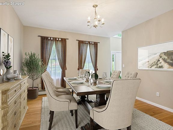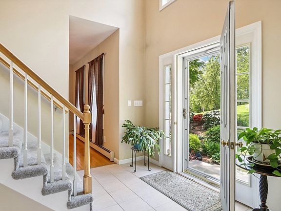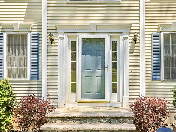 Danville's Rockrimmon Estates is where you will find this beautiful 4 bedroom, 2.5 bath Colonial on 2.7 acres. Sun drenched 2 story tiled front entry leads to the living room with carpeting and freshly painted walls. Kitchen has been remodeled with cherry cabinets and custom designed center island with plenty of seating! There's a new slider leading to the remodeled back deck, half bath with laundry, dining room with hardwood floors and front to back family room with wood burning fireplace. Second level has the primary bedroom with vaulted ceiling, two walk in closets and a full bath. There are 3 additional bedrooms and another full bath. Lower level has a finished mudroom area off of the 2 stall garage, a great office space with window and utility room that walks out the the private firepit area with concrete patio and area for a hot tub. Enjoy the above ground pool with decking, store your pool supplies in the shed and collect your eggs from the chicken coop or tend to your very own beehives. Highly desirable neighborhood with the Rockrimmon Trail and Clyde Goldthwaite Recreational Facility with pickleball, basketball, playground and ball field.
