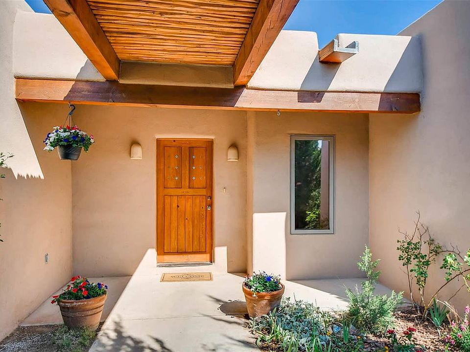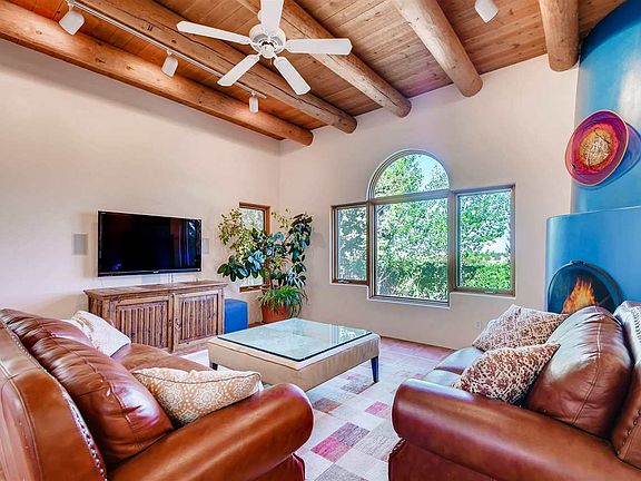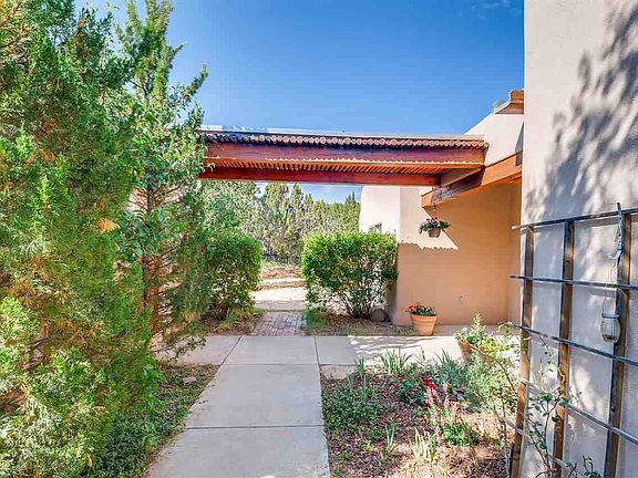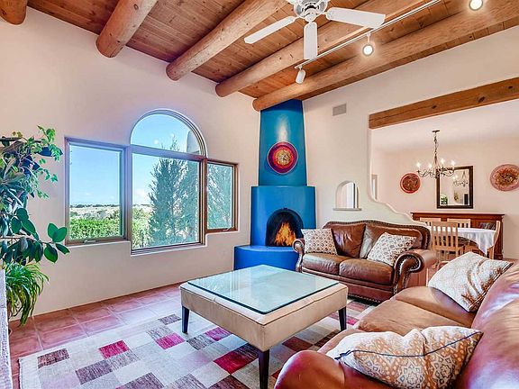 Views! Views! Views! - Hidden at the edge of Eldorado, this private, home bordering open ranch land and greenbelt has easily the most impressive views of sunsets, Jemez and Sangre mountains in the area. The classic split bedroom plan has a large master with spacious bath and closets, a separate dining area and breakfast nook off the kichen, a utility room and an office with French doors from the hallway as well as entry from the front courtyard. The home centers around the great room featuring large windows to provide magnificent panoramic views across ranch land to the north and west. Custom cabinetry, tile counters, high viga and plank ceilings, nichos and corner kiva fireplace stay true to the Santa Fe style while including upgrades such as wiring for security and computer, Hurd windows and natural gas radiant heat. A two-car finished garage with storage is attached by a latilla-covered walkway. The beautifully landscape and private front and rear portals offer additional living space to enjoy views from your own private sanctuary. Shows beautifully!
