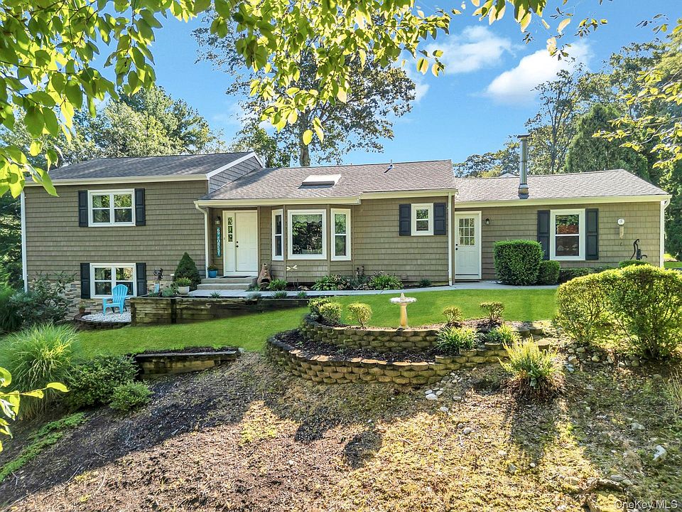 Once in a lifetime opportunity to own a magnificent sprawling home in the highly desirable San Remo section of Kings Park. This residence immediately captivates with its beautiful cedar impression vinyl front siding, cultured stone skirt, and a raised rock bed that perfectly complement the stunning surroundings. The home boasts an updated roof, windows, and siding, along with a large two-car attached garage and an expanded blacktop driveway finished with Belgian block edging, as well a ample off street parking. Situated on just shy of a half-acre, the large lot is designed for multiple entertaining spaces, including a custom raised patio, outdoor shower, and expansive wooden deck.