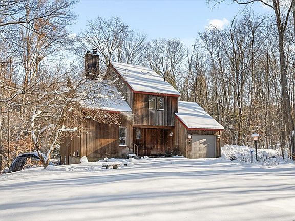 OFFER DEADLINE TUES 1/28 @ 10AM. Tucked away among the trees on just over 2 acres in sought-after Chesterfield Heights, this unique contemporary 2-bedroom home offers privacy and charm. The property features a new deck, a fenced-in backyard, and an attached 1-car garage. Inside, hardwood floors flow throughout, and large windows invite an abundance of natural light. A cozy woodstove adds warmth during the winter months. The primary bedroom boasts a versatile loft space, perfect for a home office or den. Upstairs, the spacious full bathroom includes a jetted tub and a separate shower, complemented by a convenient half bath on the main level. Recent updates include refaced kitchen cabinets, a septic system less than 5 years old, and a brand-new boiler being installed. The entire interior was also just freshly painted and is a blank slate! Located just a short drive to Keene, Brattleboro, VT, and Spofford Lake, this home combines a tranquil setting with an ideal location. Showings are by appointment only.