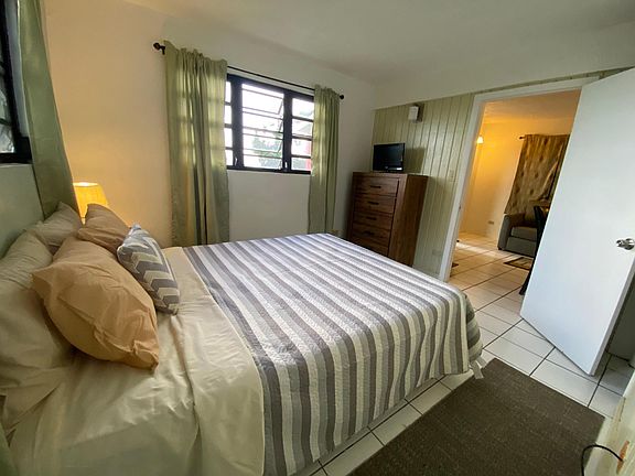 One bedroom, one bathroom apartment on the west end of St. Thomas. Amenities include: Porch w/ ocean view Utilities included up to average usage (electric, water & Internet) Stand-by generator Fully furnished A/C One off-road parking spot Utilities included up to an average usage, renter responsible for overage. No smoking in unit, outdoor smoking is fine. Animals/Pets negotiable. A/C in bedroom. One parking spot per unit.