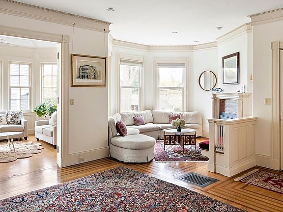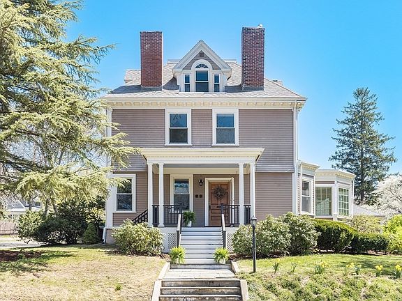Thought to be Designed by Charles Brigham on a .3 acre corner lot in 1891, 69 Garfield Street is a Colonial Revival Victorian masterpiece. Friends are received in the distinctive central entry hall w/ walnut inlaid floors. This space hosts musicians during lively gatherings & sets the stage for comfortable everyday living in the five surrounding living & dining rooms marked by 9.5' ceilings, intricate moldings, arches & millwork. The bright spacious kitchen enjoys southern sun & features St. Charles custom cabinetry, an architectural status symbol for decades. 2 walk-in pantries, ample laundry room, 1/2bath & mudroom complete the main level. 5 fireplaces grace the home, 1 w/working gas insert, others decorative with original tile. The top two floors offer 6 options for bedrooms, studies, dressing rooms or offices & 3 bathrooms. A rare offering in a treasured hamlet near Harvard Sq, BB&N & Arsenal Yards innovation hub, in the cultural & intellectual vibrancy of Watertown. Offers 5/1@5pm