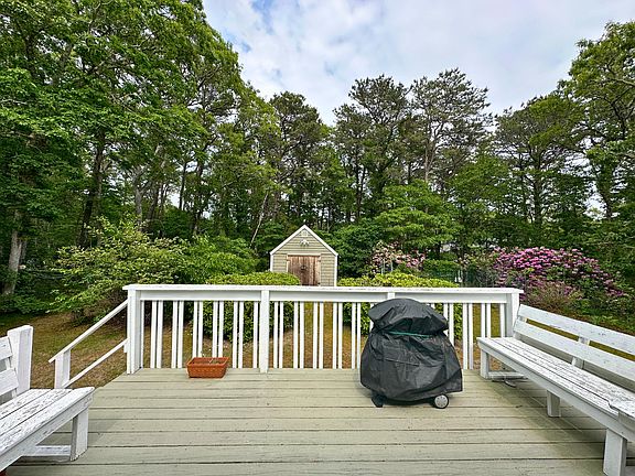 Privacy, on a cul de sac, first floor living, great outdoor area, This is a wonderful home. Close to 3 pretty ponds and under 5 miles to Paine's Creek beach and its beautiful sunsets and marshes. It has been meticulously maintained through the years, with central air. Eat in kitchen with Corian counters ,as well as dining room give this home plenty of room to entertain. All rooms are generously sized. The basement has a full bathroom, and room for further expansion. Beautiful deck, and private back yard with a large shed. This could be the home for you!
