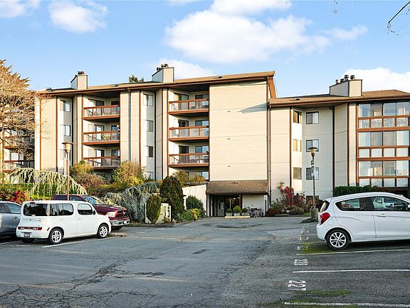 Welcome home to this bright, top floor condo in the popular Cedar Shores Complex. This spacious two bedroom unit includes a large primary bedroom with ensuite, open full-sized kitchen, in suite laundry, wood burning fireplace and a peaceful sunny closed in deck connecting you to nature. Set in a resort style complex which is centrally located and set by the waters edge with beautifully landscaped grounds offering a private waterfront picnic and barbeque area, swimming pool, hot tub, party room, and walking trails. Paddlleboard into town from your own backyard or get a garden plot at the community garden right next door! There is also an on site caretaker in this well managed complex. Purchase as your home, or have it as an investment. Walking distance to shops and amenities, rec centre and library and easy bus routes, this home is sure to please.