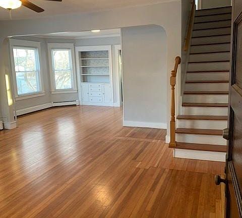 Freshly painted townhouse style apartment with newly updated kitchen, available for rent. 3 floors PLUS walk out basement. Upstairs living area is 1,500 square feet - 3 full bedrooms and additional loft/office/space or bedroom on the 3rd floor. All bedrooms have closet space with a walk-in closet in the master bedroom. 1.5 bathrooms. Gleaming redone hardwoods floors through the first and second floors. Stainless steel appliances in the kitchen, complete with cozy breakfast nook. Full basement space with laundry hookup in unit. Extra large deck with tall privacy fence that separates the deck space from the 2nd unit. Walking distance to downtown Westerly's amazing libraries, restaurants and bars - minutes from Westerly beaches! Centrally located and only minutes to 95. 1st & security deposit due at signing. Includes laundry hookup, landscaping, water/sewer. Renter responsible for electric/gas and snow removal services as needed. 2 parking spaces provided. Renter's insurance required. No pets, no smoking. Background, credit check, proof of income required.