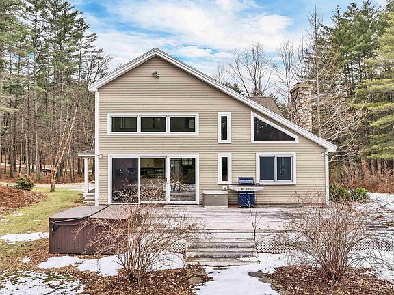 Welcome to this beautifully and uniquely crafted open-concept 2-bedroom, 2-bath home nestled nicely on 4.5 wooded acres overlooking Pine Island Brook. Approaching and stepping through the front door immediately provides a warm sense of ‘welcome home.’ You are sure to appreciate the contrast between wood tones and fieldstone accents, the vaulted ceiling, hardwood flooring throughout, with great lines of sight inside and out. Enjoy the covered mahogany wrap around porch, or large mahogany deck off the rear to relax and watch for the wildlife (deer, fox, owls, etc.). SS appliances, granite and tremendous storage space compliment the kitchen. Large closets and additional storage space are a theme throughout this home. A spacious, dry basement is ready for more storage or to be finished off. A detached, insulated & heated, high-ceiling garage provides space for vehicles, boats, a workshop – your choice. Close to Concord and commuter Routes 106, I-393, I-93, I-89, Routes 4 and 202. You will relish this serene setting, out of the way, but close to all amenities! Call today to book a private showing or come to the OPEN HOUSE SAT., JAN. 11TH 10AM-1PM.
