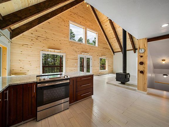 Your mountain modern home awaits! Energy efficiency, clean lines, and beautiful finishes make this home a standout among others. A tasteful combination of bamboo hardwood floors, 27' aspen T&G ceilings and huge windows with just the right amount of southwest sunshine greet you as you walk in. On the main floor you'll find the living room and dining area, kitchen complete with granite countertops, open shelving and peek a boo window over the sink, primary suite with attached bathroom, and access outside to a newly stained 10x34 deck. In-floor heat and a woodstove make this home easy and efficient to heat in the winter months. From the main level, head upstairs to the spacious third level loft perfect for watching a movie, or use as an office space. Downstairs on the lower level, the walkout basement has been fully finished with 9' ceilings, new carpet and offers two additional bedrooms, a second living room space and a second bathroom. Exit from the basement to your 10x34 covered patio and backyard. This home was designed with energy efficiency in mind: in addition to being a SIP (structural insulated panel) home designed to increase R-value, there is a 65-gallon high efficiency water heater and LED efficiency lighting throughout. Forest Lakes is a four-season subdivision providing maintained roads and access to Lake Simpatico and BLM/hiking trails. Thought in design and energy efficiency are evident in every detail of this gem in the pines!