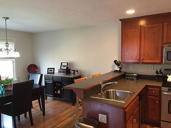 Newly renovated two bedroom condo with open floor plan. Cathedral ceiling, paddle fan, hardwood floors and gas fireplace enhance the spacious first floor. In 2015/ 2016, entire condo professionally painted in neutral tones, carpets replaced and hardwood floors refinished. Stainless steel appliances, Sun beams through every window. Hunter Douglas Luminettes just installed on living room slider. Master suite features walk in closet and two additional closets. Large Palladian window and cathedral ceiling with fan in master suite. Hunter Douglas blinds in both bedrooms. Large basement area available for refinishing. Easy access to 146, 495 and Mass Pike. Great commuter location.