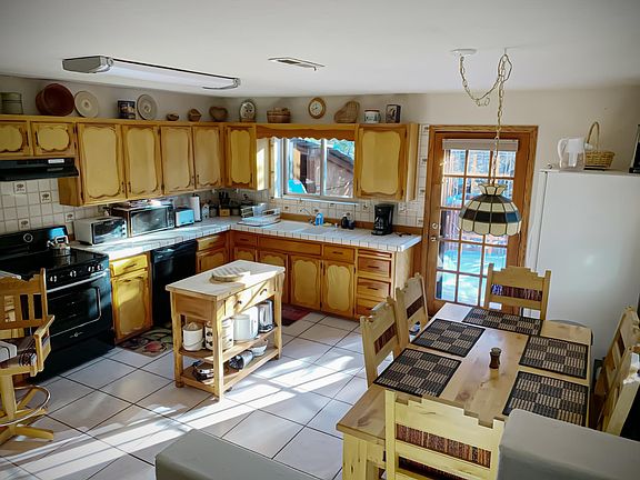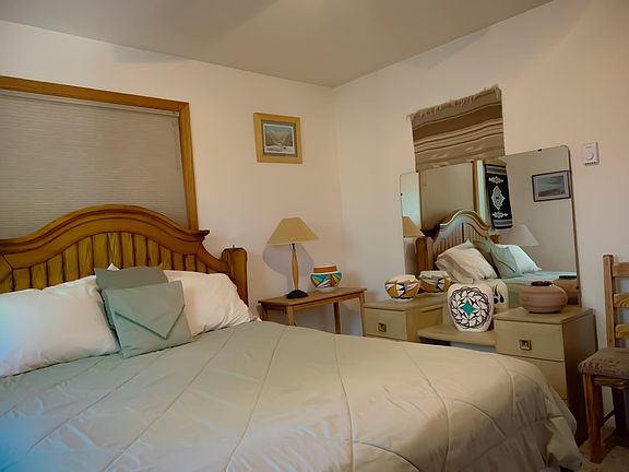 Quick note about rates: I use graduated discount rates - the longer you stay, the greater the discount. Rates also depend on which nights during the week are selected. Just inquire about the rate and it will be customized for your particular stay. This home provides a cool respite from the summer's intense heat, or a cozy place to "hole up" by the fire during winter storms. Located at an elevation of 7100 feet in the Sandia Mountains. It is just off The Turquoise Trail, a National Scenic Byway that traverses the back country between Albuquerque and Santa Fe. On it you'll travel through the old historic mining towns Golden, Madrid, and Cerrillos where you can find art, crafts, theater, music, museums and more. The name comes from the blue-green turquoise first mined by the early Pueblo people and now nationally recognized as a precious stone that is typically set in silver. In fact, turquoise mined here found its way to the crown jewels of Spain. Contact me for lease duration, and terms.
