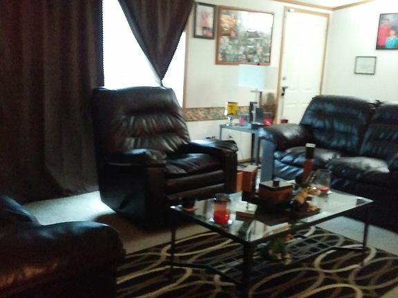 Roomy 3 bedroom 2 full bath split floor plan. Spacious living room with large windows for natural lighting, lots of built in shelves and cabinets for storage. Kitchen comes with all appliances, double sink, lots of shelving, and cabinets come with beautiful design glass doors. Main bedroom has full bath with stall shower, garden tub, and double sinks. Separate laundry room with its own entrance from the driveway. Ceiling fans throughout the home, Large deck over looking pond, and shed for storage. Reoccurring fee $353.00 a month (lot rent)