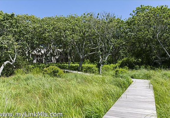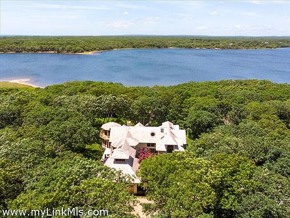 EDGARTOWN GREAT POND retreat with 6 bedrooms, 5.7 acres, over 400' of waterfront, and boating access to the Atlantic barrier beach. Look no further than this beautiful residence designed by Sherman & Associates for a move-in ready option on the coveted shores of the Great Pond. Set privately in Kanomika, a hidden enclave that occupies one of the few true peninsulas on Edgartown Great Pond, this property offers room for all guests. The interior features brilliant light and volume, with huge windows and high ceilings throughout. Fabulous views of the water from many rooms. All of the bedrooms and living spaces offer generous proportions. A gorgeous boardwalk out to the waterfront provides a sublime connection between the house, land, and water, and the experience of boating, paddleboarding, kayaking, and swimming on the pond. Access by boat to the Atlantic barrier beach provides an experience that is second to none on Martha's Vineyard.
