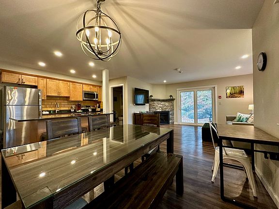 Welcome to this spacious and renovated two-room suite condo at Killington Center Inn and Suites, perfect for your Vermont retreat. The main suite features an open kitchen with stainless steel appliances, a bathroom with a modern tile shower, and a kitchen island with seating for four. Enjoy meals at the dining table and relax in the living room, which includes a sleeper sofa, smart TV, gas fireplace, high-speed Wi-Fi, and an outdoor patio area. The primary bedroom offers a king bed, smart TV, en-suite bathroom, and washer dryer, ensuring your stay is comfortable and convenient. Located on the bus route to Killington Resort, you'll have easy access to the slopes. This well-appointed suite boasts a modern kitchen with stainless steel appliances and a kitchen island with seating for four. The living room is equipped with a sleeper sofa, smart TV, gas fireplace, and high-speed Wi-Fi, providing a cozy atmosphere for relaxation. The outdoor patio area offers additional space to unwind. The primary bedroom features a king bed, smart TV, en-suite bathroom, and washer dryer, catering to all your needs during your stay. Guests can enjoy the outdoor heated saltwater pool, open from June to mid-September. Discounted ski and snowboard rentals are available for those looking to save on their ski trip. Early check-in or late check-out may be available for an additional charge. Situated on the bus route to Killington Resort, this suite offers easy access to the slopes for skiing and snowboarding enthusiasts. Guests can enjoy discounted ski rentals for an unforgettable experience. The property is conveniently located near various attractions, including Killington Snowshed Base, Pico Mountain, and Mountain Meadows Cross Country Ski and Snowshoe. For those interested in nightlife, Pickle Barrel, Wobbly Barn, and Mary Lou's are just a short distance away. The suite is also close to Killington Golf Course and Green Mountain National Golf Course for golf enthusiasts. The entire property is non-smoking and non-vaping, with smoking or vaping only permitted outside. A $450 fine will be imposed for any unauthorized pets. Quiet hours are from 10pm to 8am. Smart locks are available for contactless check-in, with a unique access code sent the week of your arrival. Winter weather is unpredictable, and weather-related refunds are not offered, so travel insurance is recommended. All-wheel drive and winter tires are also recommended for travel during the winter months.