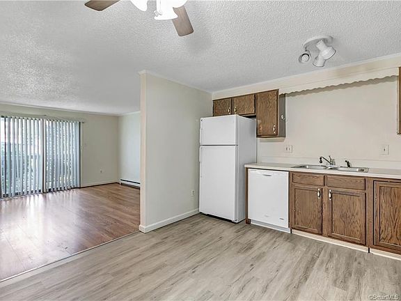 Cute condo unit perfect for a first-time buyer or buyer looking to downsize! Located on a quiet dead-end street in the Beardsley Park section of Bridgeport. This first floor unit features two bedrooms and one full bathroom. The kitchen has a breakfast nook where you can add stools, and it opens up into the dining room area. Brand new laminate floors throughout the main areas, with brand new wall/wall carpeting in the bedrooms. The large windows let in tons of natural light throughout the unit. Enjoy sitting outside on your own private cozy deck! Shared basement/common area with coin-op laundry and a huge locked storage space. Additional features include two assigned parking spaces, and low HOA fees which include the cost of water and sewer! Nothing to do but move right in and make this place your own! Schedule your showing today. Pre-recorded video tour also available!