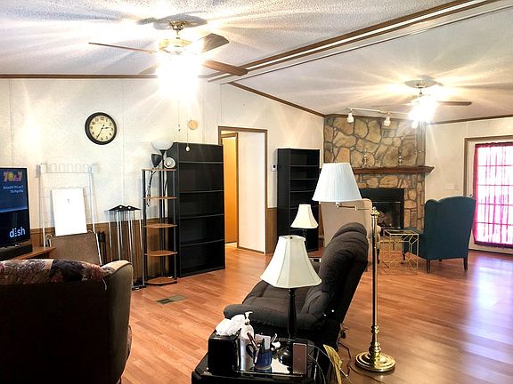 Beautiful Home on 4 gorgeous acres has room for horses, livestock & all the farm life it can hold! The property is fenced & cross fenced with 20x40 Workshop with electricity & bathroom! Home has 4br 2 ba with gas log fireplace, large living area, kitchen with Island & tons of closet space! Pantry is in utility room off of kitchen! 4 ton AC is 3 years old, gutters, & flood lights on each end. Front porch is covered 16x13 wood deck & back porch is oversized16x32 area perfect for entertaining! Storage container has electricity, 3 covered carport awnings, & all the nature you can handle!!