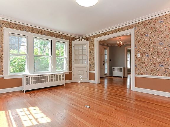 Welcome to the Highlands! This distinguished, 1920's center hall brick colonial with a multi-colored slate roof is located on a premier block in this sought-after neighborhood. Open the front door into a grand entryway. To your left, is a spacious living room that stretches from front to back of the home, with a fireplace and two sets of french doors, which lead to a window-filled, four-season sunroom. On your right, you will find a formal dining room with two original built-in corner hutches. Through a swinging door, you enter a large eat-in kitchen, with updated granite countertops. A 1/2 bath completes the first floor. The second floor has two good-sized bedrooms, an office, a full bath and the primary ensuite bedroom, The ensuite bathroom features vintage tile. A third floor includes two more bedrooms and another vintage bathroom with a tub. This charming home offers many original details (glass doorknobs, linen closet, hutches, ect) and is ready for a new owner to make it theirs'!